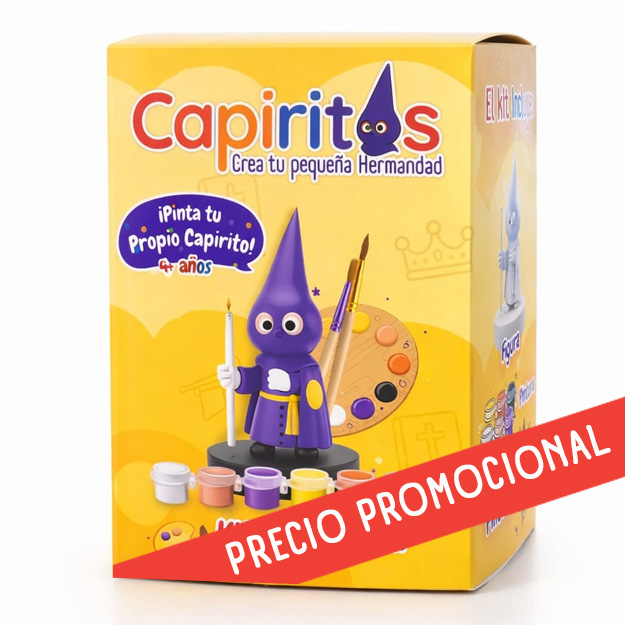 Nuestro Capirito para pintar, está realizado en impresión 3d e incluye peana. La figura tiene una imprimación en blanco para que sea más fácil de pintar. La caja contiene 6 boles pequeños con pintura acrílica y dos pinceles para poder pintar la figura. Un pincel fino para los detalles más pequeños y otro más grueso para pintar las partes más grandes.